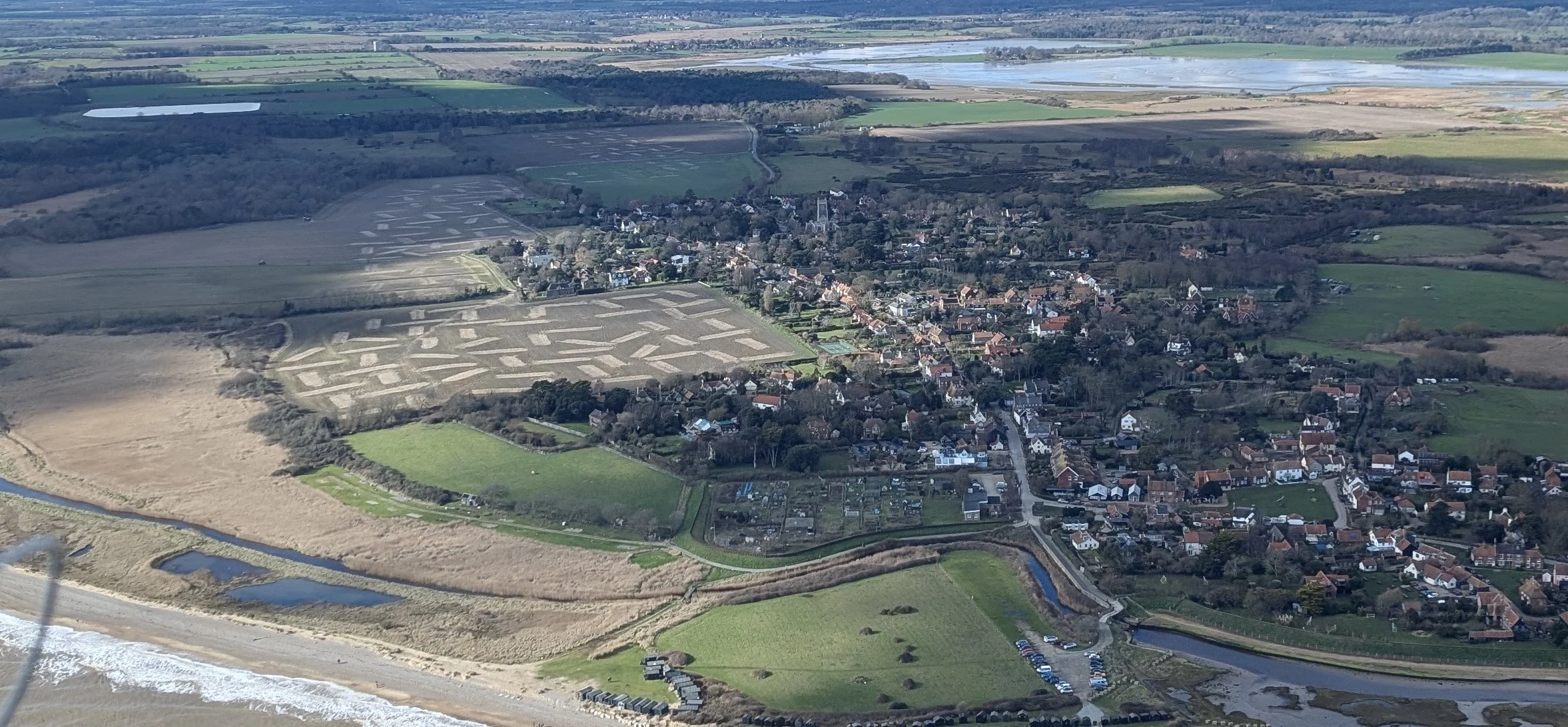 This aerial photograph shows the same landfall process happening at Bawdsey 30 miles away. The image hasn’t been doctored… the cable route is as wide as a motorway.